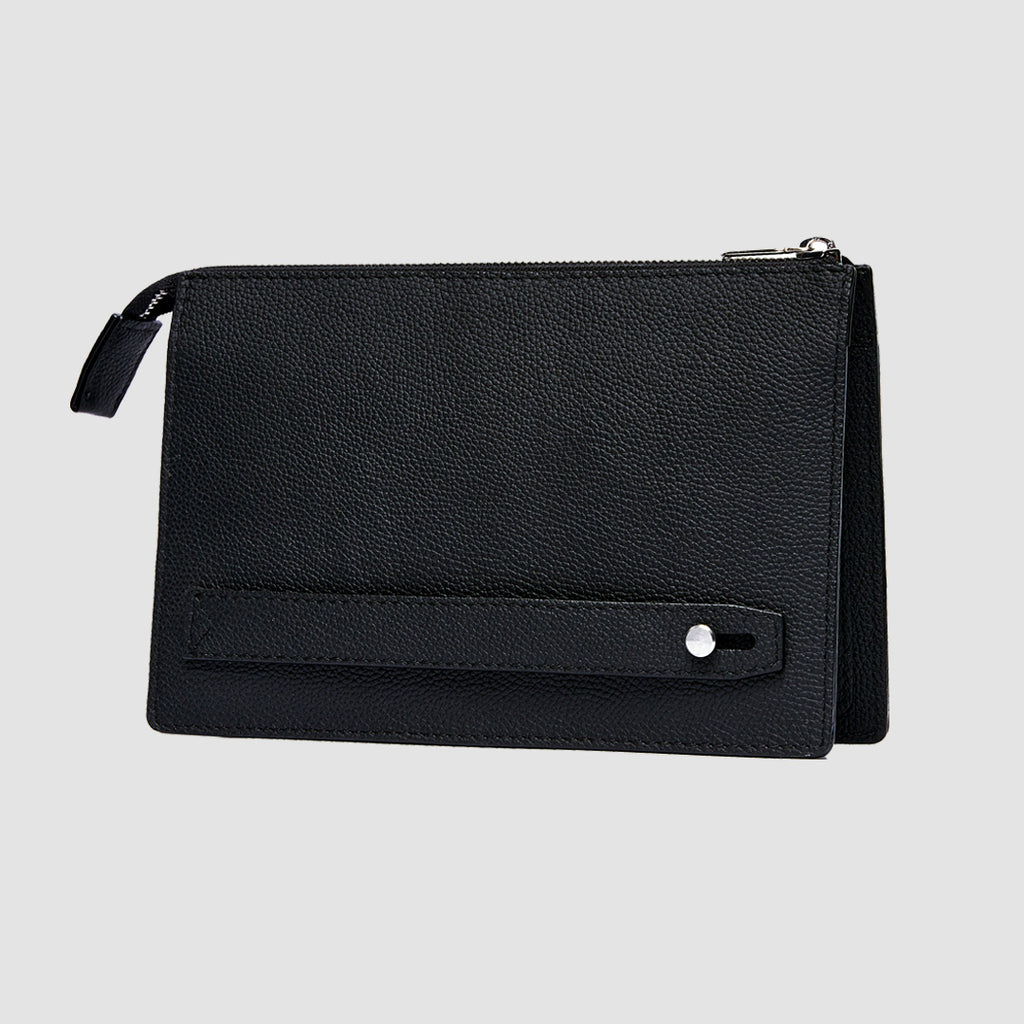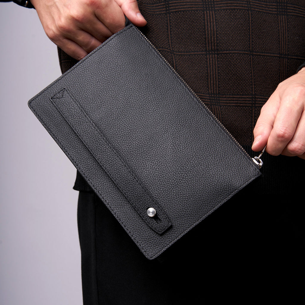 Handcrafted from full-grain Italian leather, this minimalist travel pouch protects your phone, passport, AirPods, and cards in a sleek 10mm profile. The triple-compartment design keeps items separated yet accessible, while the reinforced zipper ensures nothing slips out – whether you’re navigating airports or daily commutes.